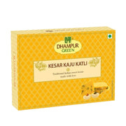 - Dhampur Green's Kesar Kaju Katli is a testament to the art of balance and the pursuit of perfection. At its core are the luscious cashew nuts, comprising a generous 52% of this delightful treat. These cashews are handpicked for their quality, ensuring a melt-in-your-mouth texture that's both luxurious and indulgent.
