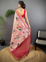 Radiant Pink Tussar Silk Digital Print Saree