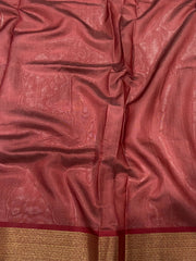 Exquisite Tussar silk saree, adorned with a rich red thread Kantha stitch border that exudes handcrafted charm.The pallu is a vision in deep red, intricately woven with luxurious zari patterns that elevate its festive elegance. The body features a soft, digital printed floral design, lending a contemporary contrast to its classic elements. Ideal for celebrations, weddings, or cultural gatherings, this saree is a stunning blend of heritage craftsmanship and modern artistry.