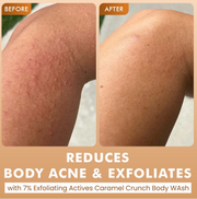 • Exfoliating Caramel Body Wash - Drip of Caramel in your showers! A powerful blend of 7% Exfoliating Actives, this body wash is specially made to make skin smoother and acne-free. 1% Salicylic and 2% Lactic Acid unclog pores, remove dead skin and kill acne causing bacteria. Natural Walnut Particles and 3% Willow Bark Extract provide gentle exfoliation and reduce rough skin. Antioxidant-rich Coffee Extract removes tan. 5% Glycerin hydrates and prevents dryness.