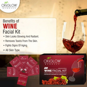 - Wine Facial KitLeans & Reveals Instant FairnessThe new innovative formula Wine Facial Kit, wrinkle free-effect & renovates skin cells fortified with grapeseed oil and lemon extract.A good skincare routine is only as good as the products your use. With the goodness of glow-boosting, antioxidants, Oxyglow natural advanced pro formula wine facial kit is made, which is suitable for both oily and dry skin.OxyGlow Wine Facial Kit helps in retaining moisture in the skin as well as increasing skin's elasticity and smoothness. It deeply nourishes the skin to give it that natural glow. Grapeseed Oil treats acne outbreaks and makes skin softer and more elastic extracts. This facial kit will provide you with an everlasting glow and fairness.