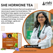 • Rishi Natural She Hormone Tea is a caffeine-free, all-natural herbal blend thoughtfully crafted to support women dealing with PCOS and PCOD. Designed for daily use, this tea promotes hormonal balance and overall well-being, making it a valuable addition to your wellness routine.