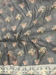 Experience timeless elegance with this exquisite Linen Lakhnavi Saree, featuring intricate Lakhani weaving and a captivating digital floral print on the body. The delicate Resham thread work on the pallu adds a touch of refined sophistication, making it a perfect blend of traditional artistry and contemporary style. Ideal for festive occasions or graceful everyday wear.
