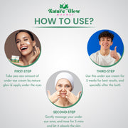 With Nature Glow Under Eye Cream, find out the key to younger, brighter eyes. Our sophisticated formula targets common under-eye issues like puffiness, fine lines, and dark circles by combining the power of natural ingredients. Our cream, enhanced with [important ingredients], brightens and revitalises while also adding hydration for a look that is renewed and radiant.Bid farewell to eyes that appear tired and hello to a refreshed, younger version of yourself. All skin types can from our mild and non-irritating formula, which makes it a flexible addition to your regular skincare regimen. Use Nature Glow to change the way you take of your sensitive eye area.