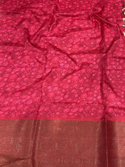 This exquisite Soft Silk Kalamkari Print Saree showcases the perfect blend of tradition and artistry.The rich pallu is adorned with intricate Kalamkari prints through detailed motifs and vibrant colors. The body of the saree presents a sophisticated harmony of traditional designs, while the border boasts fine gold zari weaving, enhancing the overall opulence. Ideal for festive occasions.