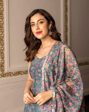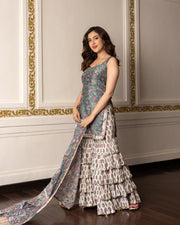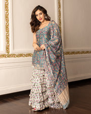 Perfect for any occasion that demands a touch of class and individuality, our stunning Paaro Chanderi Sharara Set is crafted from premium chanderi fabric. The short kurta with a striking sweetheart neckline is perfectly complemented by the gorgeous tiered sharara pants and matching dupatta, making it Ideal for the modern woman with an eye for unique and exquisite fashion.