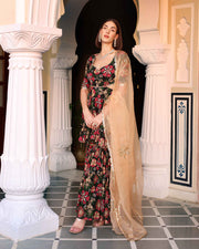Black Orchid Bouquet Printed Chinon Sharara Set