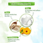Mamaearth Milky Soft Head to Toe Wash & I’m here to cleanse and nourish your little one’s skin and hair. I am a gentle 2-in-1 Body Wash and Shampoo, crafted with the natural goodness of Milk, Oats, and Calendula. You don’t need too many bottles while bathing your little one now - just one to make time bath time convenient and goodness-filled. I gently cleanse your baby’s scalp, hair, and skin while retaining essential moisture.