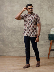 Men Cotton Short Length Printed Pocket Kurta Sandal OD35