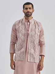Silk Blend Jacquard Jacket regular Nehru jacket, has a mandarin collar, sleeveless,front open, a welt pocket.