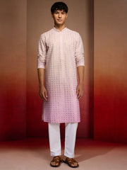 Embrace festive elegance with Vastramay's onion ombre kurta set. Features stunning sequin work and thread embroidery with geometric motifs on premium cambric cotton. Paired with comfortable white cotton trousers for a complete ethnic look.