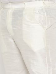 Men's Plus Size Cream Ethnic Jacket With Cream Silk Blend Kurta And Pant Style Pyjama Set