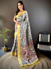 Elevate your ethnic style with this exquisite Kota Doriya saree, adorned with delicate floral motifs and traditional Kalamkari prints. Crafted with lightweight, breathable fabric, this saree combines timeless artistry with modern elegance. Perfect for festive occasions, weddings, or casual gatherings, it brings together comfort and sophistication effortlessly.