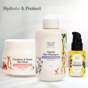 Moisturize- Cleanse- Protect Haircare Routine | Hydrates and Protects Hair Strands | Prevents Breakage and Damage | Pre-wash Hair Mask 200gm + Shampoo 250ml+ Post- Wash Serum 30ml Combo