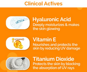 • Who says reapplying sunscreen has to be a messy affair? Meet the all-new 1% Hyaluronic Quick-Absorbing Sunscreen Spray - a sunscreen in a spray bottle. It comes with SPF 50 & PA++++ that shields your skin from the harsh UVA/UVB rays and blue light too. Formulated with Hyaluronic Acid, this on-the-go spray deeply hydrates your skin, keeping dryness at bay. Infused with Vitamin E, a powerful antioxidant that nourishes and fights free radical damage. And there’s more! It is non-greasy, transfer-proof, and gets absorbed swiftly without leaving any residue. Just spray, hydrate, and protect!