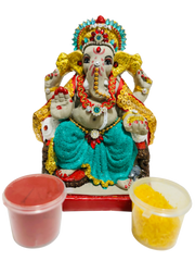 Eco-Friendly Ganesh Idol Small (Non-Toxic Colors) With Kumkum & Akshat