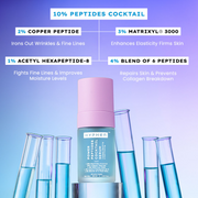 - Power Peptide Cocktail Serum one-of-a-kind 10% Peptide Cocktail serum with a potent 2% Copper Peptide that firms, plumps skin and fights signs of aging. This unique dark blue serum irons out fine lines, crow’s feet, wrinkles and improves elasticity. Designed to deliver visible and lasting results, it stimulates collagen production by keeping skin youthful.