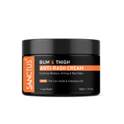 Sanctus Bum and Thigh Rash cream is an effective solution to treat the rashes that develop as a result of friction. These are common, especially in the humid weather, and usually happen on the thighs, underarms, or under the breasts.A lot of home remedies and antiseptic creams have been used for generations, which were ineffective and slow. The Sanctus Bum and Thigh Rash cream controls the rash or the chafed skin extremely fast and provides immediate relief from the inflammation.The chafing cream or the rash cream controls the redness and calms down the burning sensation felt due to the rash.