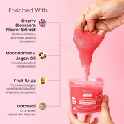 • EXFOLIATES, REMOVES TAN, MOISTURIZES: Cocoa & Shea butter with Sugar in this scrub exfoliate gently compared to any other dry scrubs or salt scrubs. Sugar granules are even, polished, and non-abrasive to the skin. It helps to unclog pores and remove textured skin that can lead to those pesky ingrown hairs. Cherry blossom is known for its rich anti-oxidant levels and soothing properties. Rich in essential fatty acids, it repairs the skin's natural barriers to promote smooth & supple skin.
