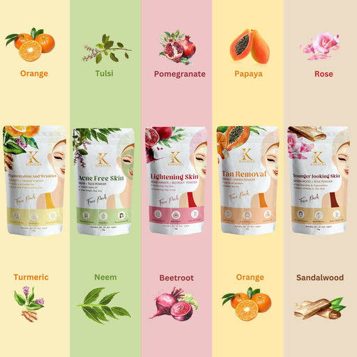 View full detailsKimayra Skin Care Combo Powder (Pomegranate + Beetroot, Neem + Tulsi, Orange + Papaya, Turmeric + Orange, Sandalwood + Saffron)