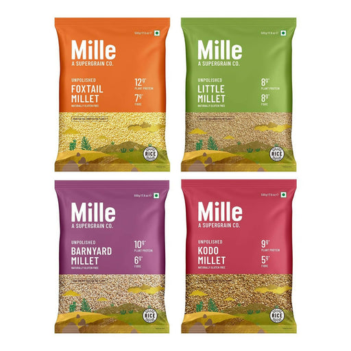Mille Grains ComboThis Combo Contains:Foxtail Millet: 500 gmLittle Millet:500 gmKodo Millet:500 gmBarnyard Millet:500 gmAbout the Product: We use t...