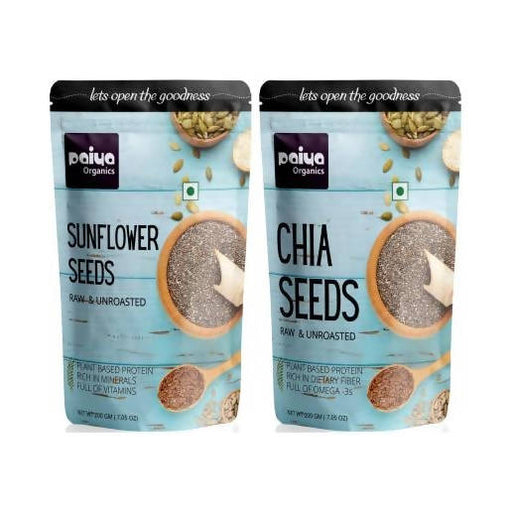 Paiya Organics Chia Seeds + Sunflower Seeds ComboCombo Includes: paiya organics Sunflower Seeds 200 gm paiya organics Chia Seeds 200 gm Usage Ins...
