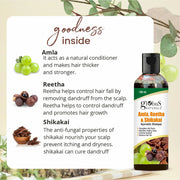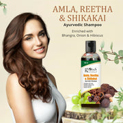 Our Amla Reetha Shikakai hair fall care shampoo is enriched with natural goodness of ayurvedic herbs. Shikakai acts as a natural cleanser and gently cleanses the scalp. Amla strengthens hair strands, reduces hair fall due to hair breakage and gives voluminous looking hair. It provides wholesome goodness to hair and makes it smooth and soft post wash.