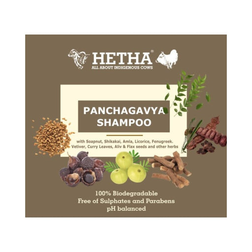 Hetha Panchagavya Shampoo About the Product: Handcrafted Ayurvedic Panchgavya Shampoo 100% Biodegradable. Free of Sulphates and Parabens. pH balanc...
