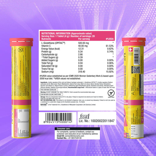 Chicnutrix Glow 500mg Effervescent Tablets - Strawberry & Lemon Flavor, For Glow & Radiance Skin