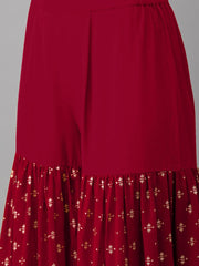 • Maroon and gold printed Kurti with sharara and dupatta