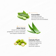 This face wash combines Aloe Vera, cucumber extract, green tea, neem, basil, and Kakadu plum in a gel-based formula. It is designed for topical application to the face. The product is intended for daily use as part of a skincare routine.