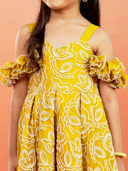Girl's' Mustard Georgette Floral Embroidered Gown