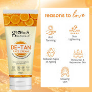 Globus Naturals De Tan Face Cream, Suitable For All Skin Types