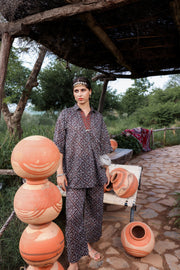 Juniper Black Floral Embroidered Co-Ord Set With Tunic & Printed Pants