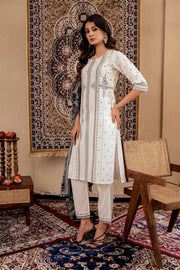 Juniper Black & White Geometric Printed Cotton Kurta With Palazzo & Printed Dupatta