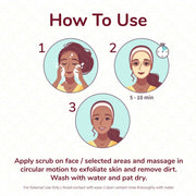 • Step1: Apply scrub on face / selected areas and massage in circular motion to exfoliate skin and remove dirt.