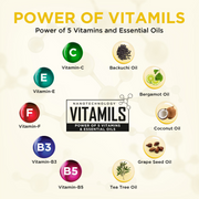 • Vitamin B3, Vitamin B5, Vitamin C, Vitamin F, Vitamin E, Coconut oil, Grape seed oil, Tea tree oil, Bergamot fruit oil, Bakuchi oil etc