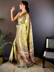 Pista Kalamkari Floral Printed Silk Saree