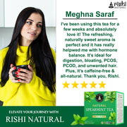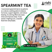 • Rishinatural Spearmint Leaf Tea delivers a refreshing and aromatic experience with every sip. Crafted from premium, organically grown spearmint leaves, this spearmint tea is naturally caffeine-free, making it the perfect choice for relaxation. Whether you're drinking spearmint tea in the morning or unwinding at night, its mild, sweet, and minty flavor is both soothing and invigorating. Renowned for its digestive benefits, spearmint for tea can help reduce bloating and support overall wellness. Many consider it the best spearmint tea due to its purity and rich antioxidant content, which promotes immune health and radiant skin. Additionally, spearmint tea for weight loss is a popular choice, as it may aid digestion and metabolism.