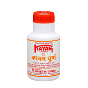 For optimal results, take 1 to 2 teaspoons of Sheth Brothers Kayam Churna at bedtime, accompanied by a glass of water.