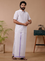 Like Father Like Son Tissue Dhoti & Shirt Combos Lavender