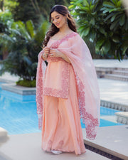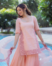 Lotus Charm Peach Embroidered Cotton Sharara Set