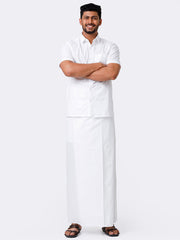 Embrace simplicity and devotion with this Men’s 100% Cotton Single Layer Stitched White Prayer Dhoti. Made from soft, breathable cotton, this dhoti ensures all-day comfort during prayers, temple visits, and religious ceremonies. The single-layer stitched design makes it easy to wear and offers a smooth, neat fit. The small border adds a subtle touch of elegance without overpowering its classic white hue. Perfect for spiritual practices, poojas, and other sacred occasions, this dhoti combines traditional charm with modern convenience.