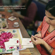 1 Tin Royal Kashmiri Kahwa (75 Gms, Green Tea, Rose, Cardamom, Cinnamon & other spices ), 1 Tin of Shubh Raatri ( Tisane, 50 Grams, an artisanal blend of Chamomile, Lavender, Lemongrass), Laxmi Ganesh Painting - Framed in Teak wood, the paintings have been made with pressed flowers petals, Festive Card