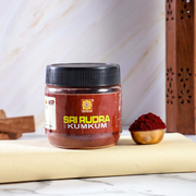 Sri Rudra Kumkum is made from turmeric, camphor, and slaked lime, carefully processed to maintain its purity and rich red color. With a fine texture and a pleasant aroma, it is widely used for pooja, festivals, and auspicious occasions. Hygienically prepared and available in 60g,100g jars,to ensure kumkum is good for long use.Known for its spiritual significance, it is considered sacred by Hindus, especially for married women.