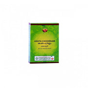 Vaidyaratnam Ashtachoornam — Vaidyaratnam Ashtachoornam Vaidyaratnam Ashta Choornam is an Ayurvedic formulation. Form: Powder Ideal for: Adults Type: Health supplement Gender: Both men and women Package content: 50gm/ 100gm in an airtight pack Ingredients Vaidyaratnam Ashta Choornam is enriched with herbal goodness. This herbal potent is made with Cumin Ginger Asafetida Rock salt Wild celery Black cumin Long pepper Black pepper Features Vaidyaratnam Oushadhalaya was established in 1941. The institute is known to use Ayurvedic principles to prepare herbal supplements. Vaidyaratnam Ashta Choornam Is made with the best quality ingredients Is not known to have negative effects on the user Comes with a long shelf life of 24 months from the date of manufacture Direction to use Vaidyaratnam Ashta Choornam should be consumed after consulting an expert. Have the decoction 2-3 times a day Drink ¼ to ½ teaspoon of the choornam a day Have the decoction with ghee in the first morsel of food Tips Vaidyaratnam Ashta Choornam stays fresh and edible for a long if the below tips are followed. Keep in an airtight container Store at a cool and dry place