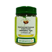 Vaidyaratnam Panchathikthakam Ghrutham is a time-tested Ayurvedic compound known for its numerous advantages. This therapeutic ghee, made with five bitter herbs and pure cow's ghee, provides internal and outward for a variety of ailments.